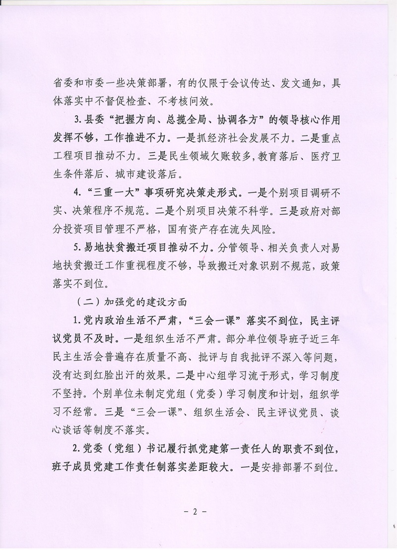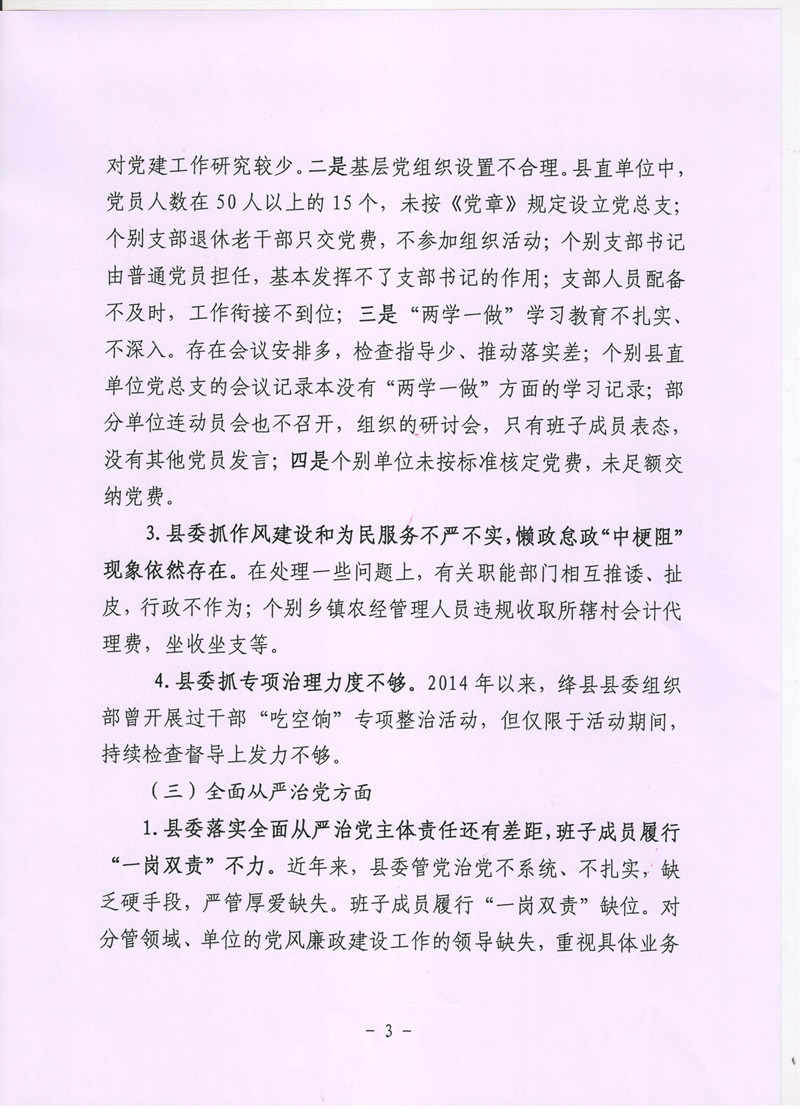 市委巡察三组关于对绛县巡察情况的反馈意见