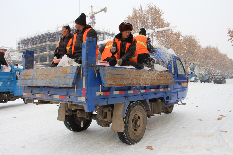 为了消除大雪带来的安全隐患,保障交通畅通,方便大家安全出行,1月4日县住建局对县城各街道抛洒融雪盐,使冰雪在较低的温度下也能很快融化,有效保障了县城各街道的平安畅通。